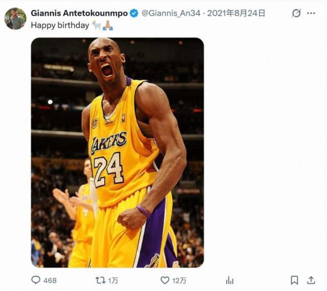 字母哥将自己的X还有Instagram内容几乎尽数删除,仅保留了近期的广告内容还有家人、以及个人获得荣誉(总冠军、NBA杯、全明星MVP等)的相关内容。而唯一一条不在此范围(家人、荣誉及赞助商广告)的是他在X上于2021年科比生日当天发布的内容——祝福科比生日快乐。