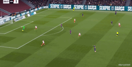 第29分钟,巴萨流畅反击,奥尔莫传中被挡